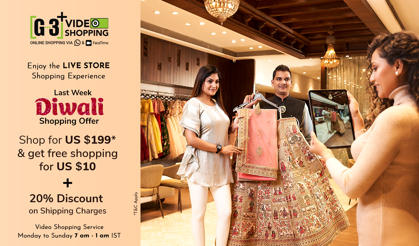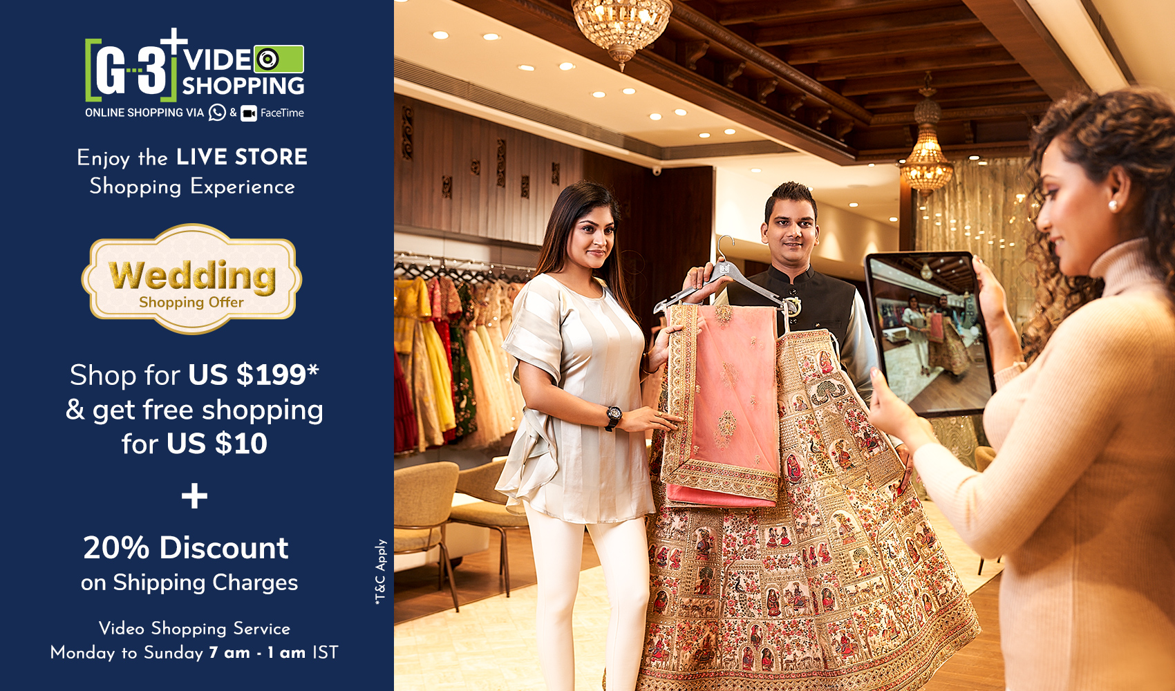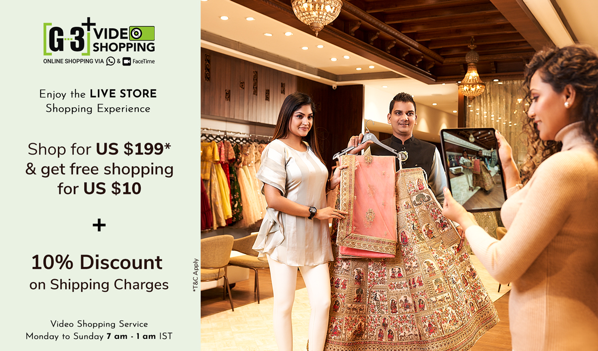 When if comes to buying lehengas for any woman, it becomes a longer journey from selecting lehengas from different websites, comparing prices and qualities or to visiting offline stores to see which is in latest trend and meets your taste. Why not Sit back home and shop for Lehenga Choli on Video Call? Try G3+ Video SHopping service for Lehenga Choli collection.
