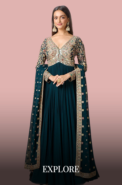 Choose from Bridal Anarkali Dresses or Wedding wear salwar kameez from heavy embroidered pieces in silk suits or trending lehenga style jacket salwar kameez dresses. Take a look at our wedding wear salwar suits in premium range of designer inspired looks or celebrity salwar kameez in budget prices.